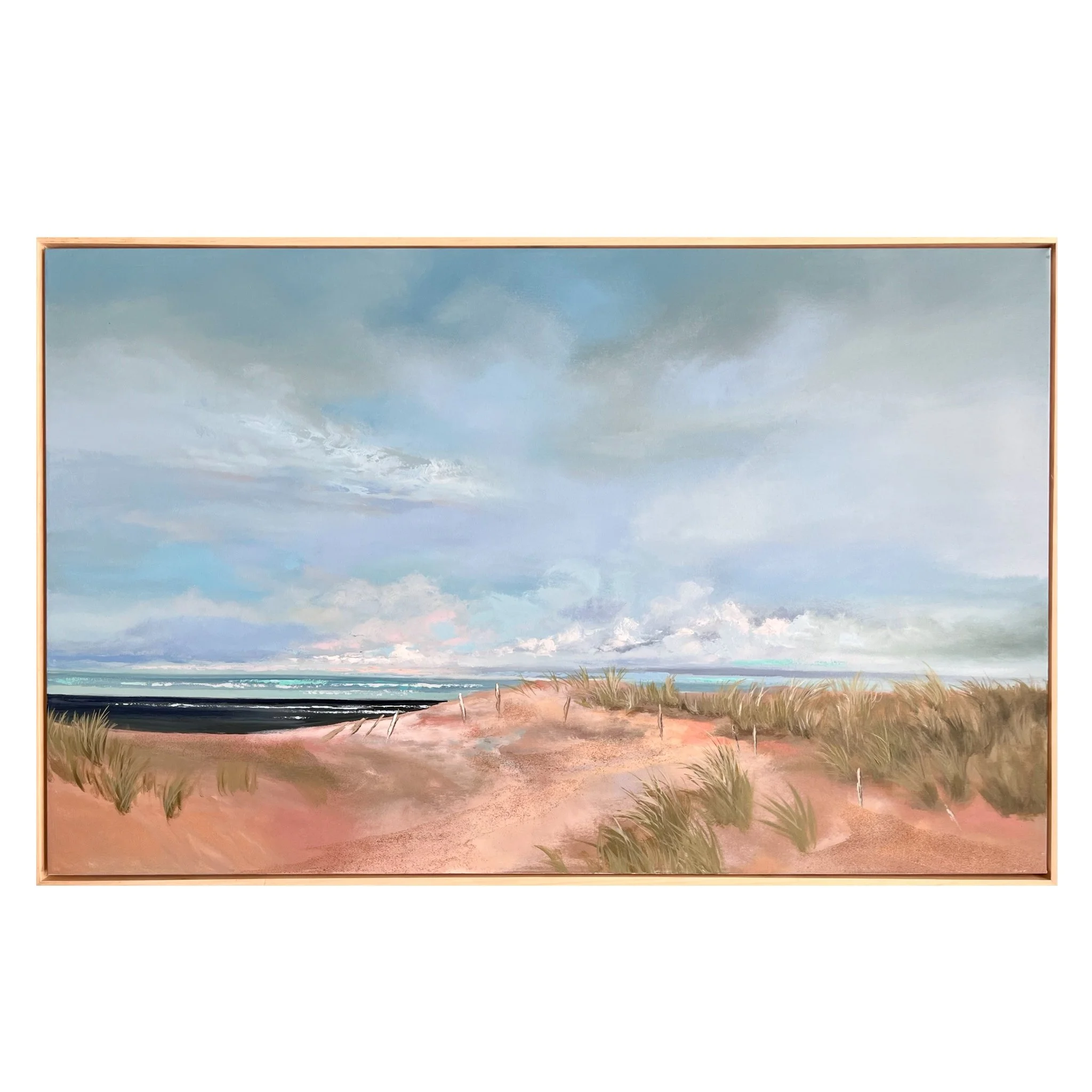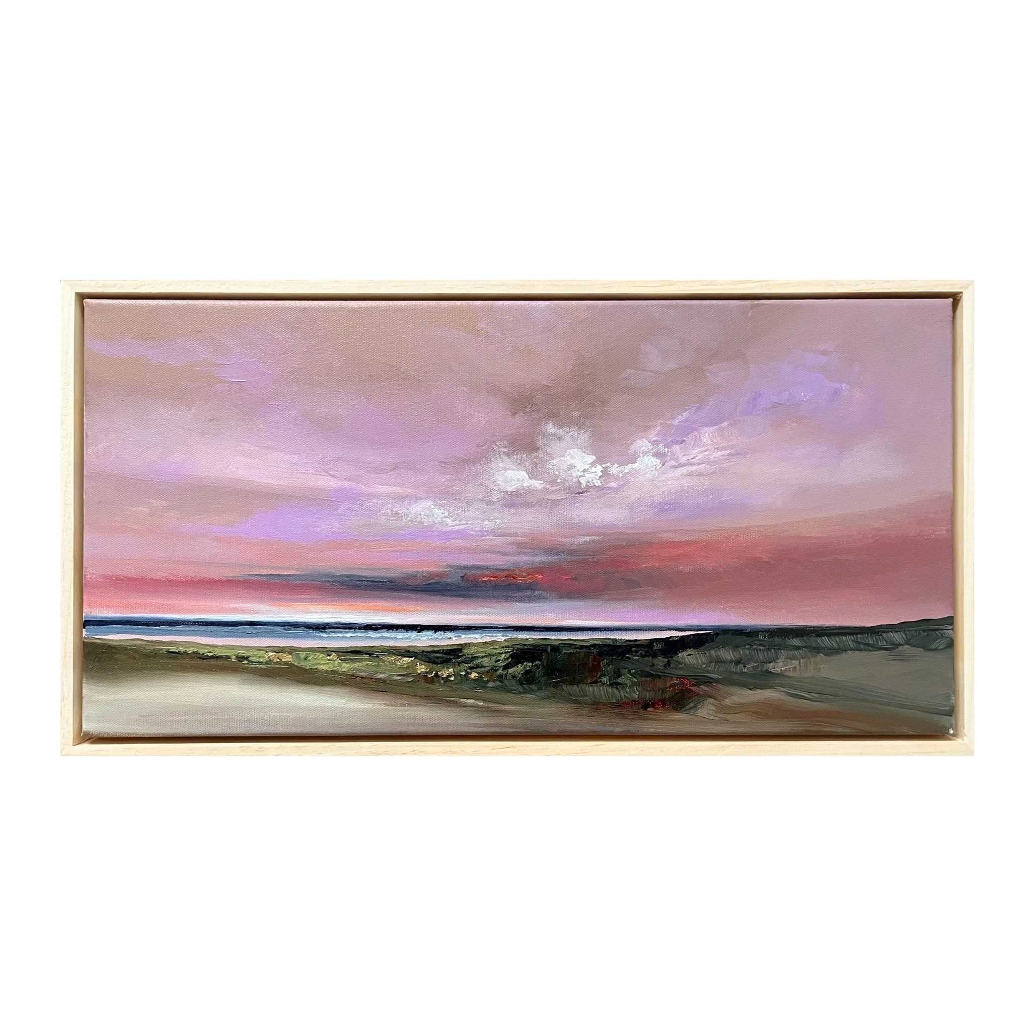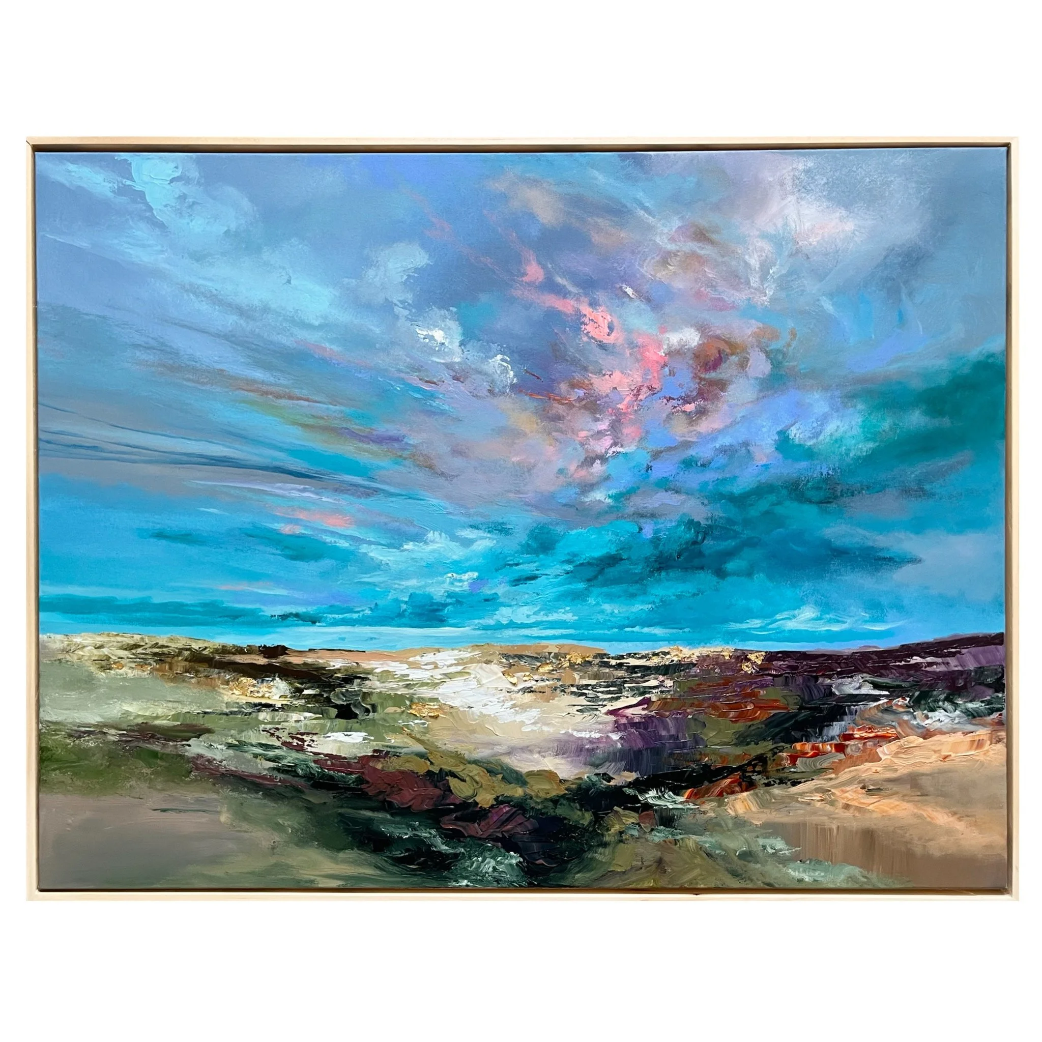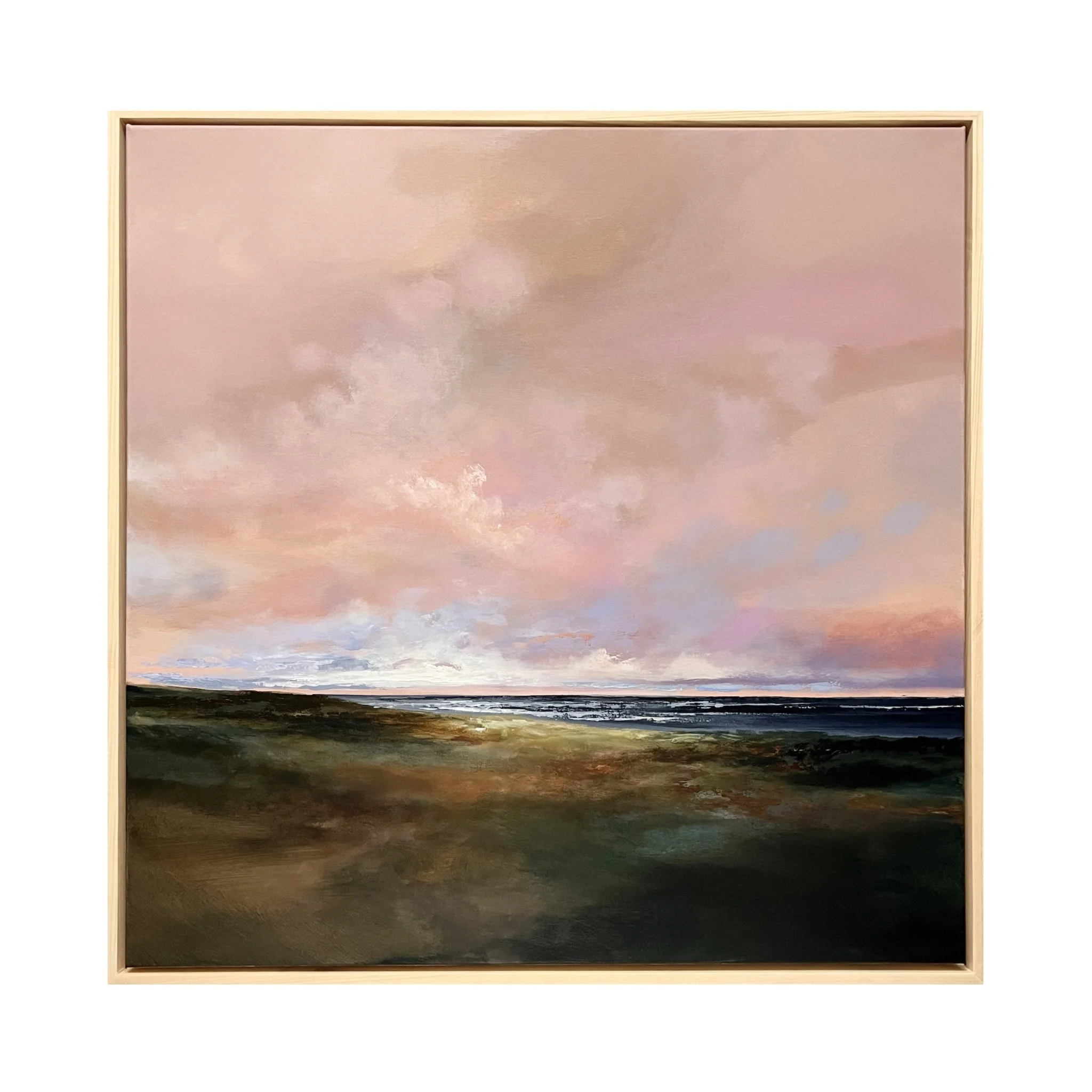 New paintings are created almost daily  in various sizes, all framed in custom natural wood frames.