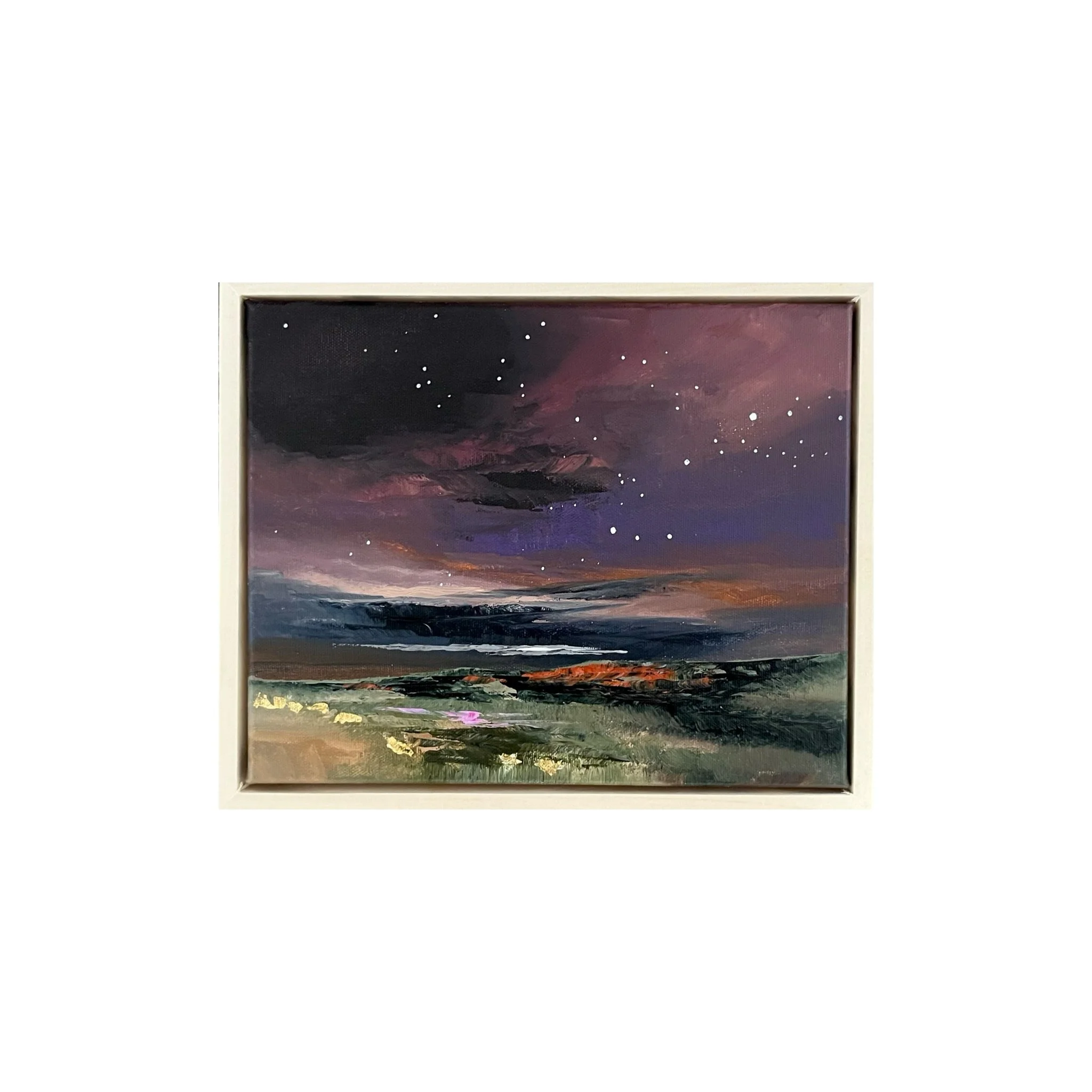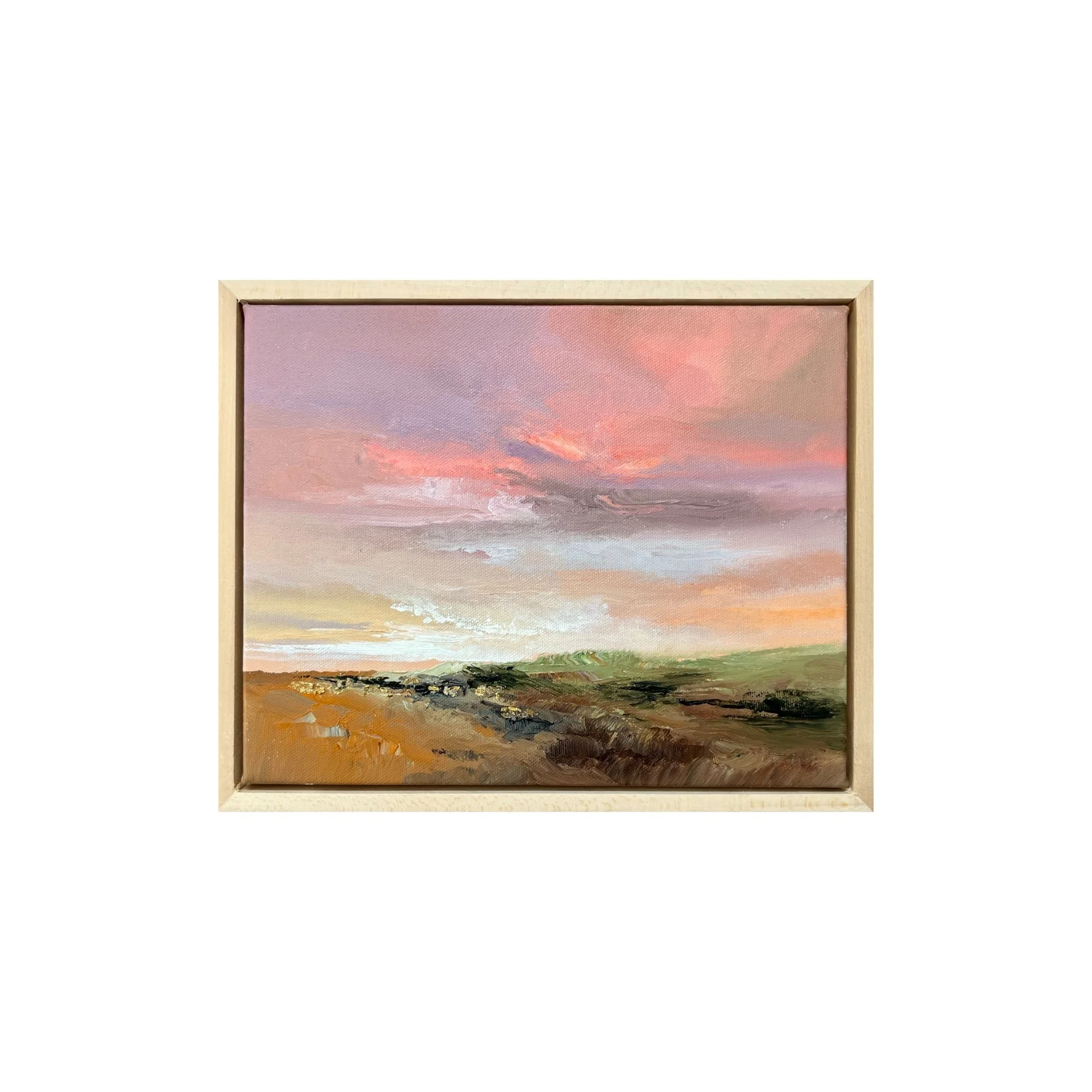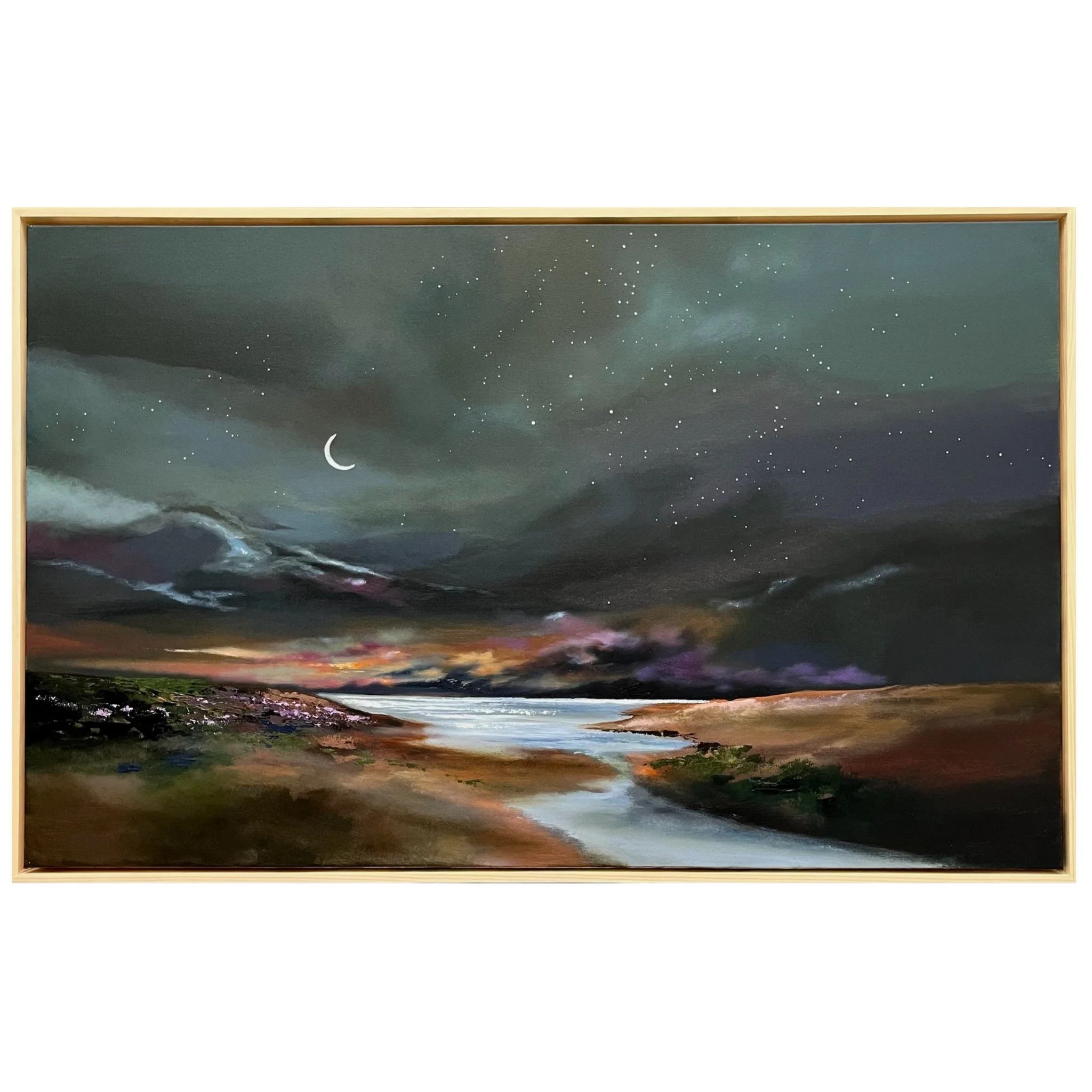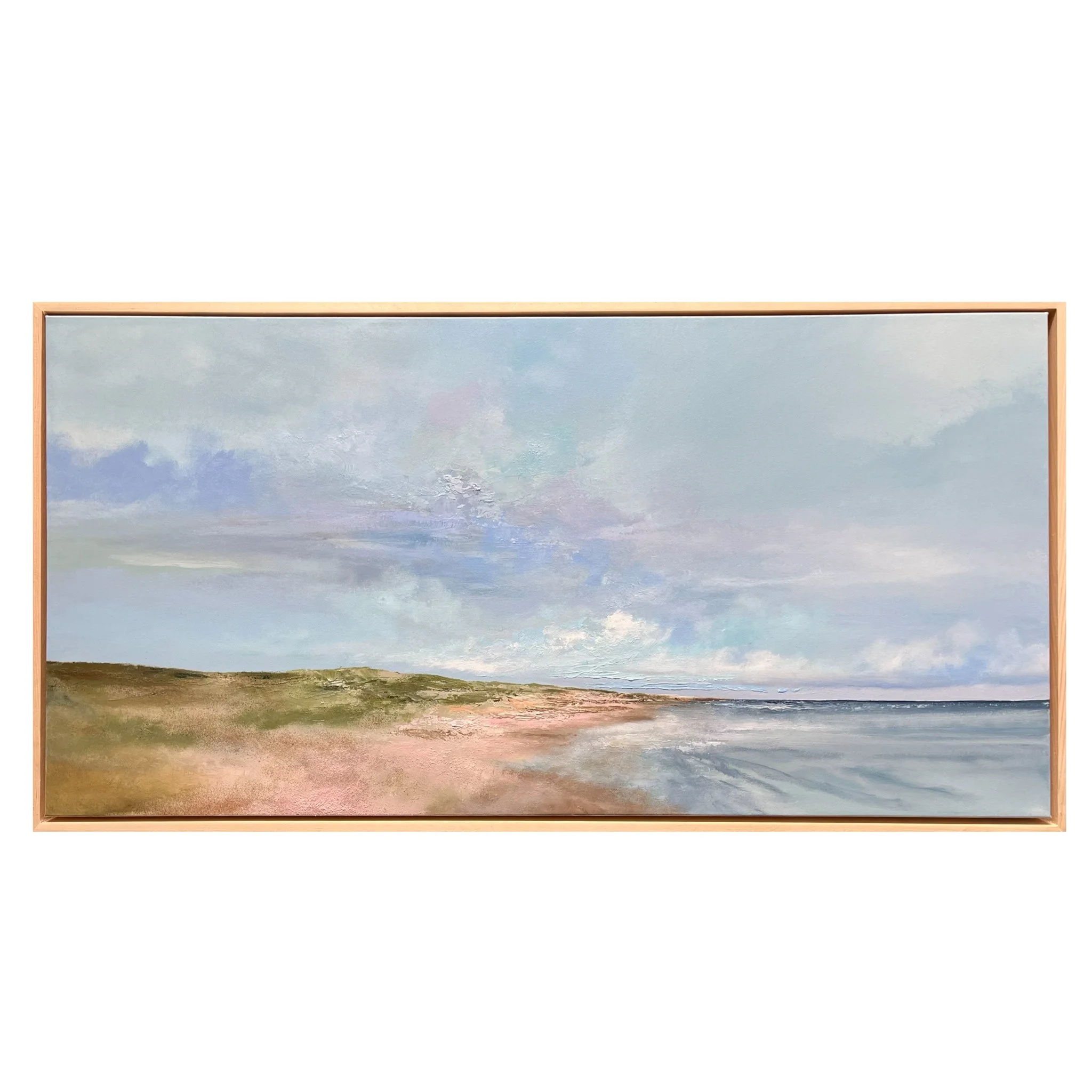 New paintings are created almost daily  in various sizes, all framed in custom natural wood frames.