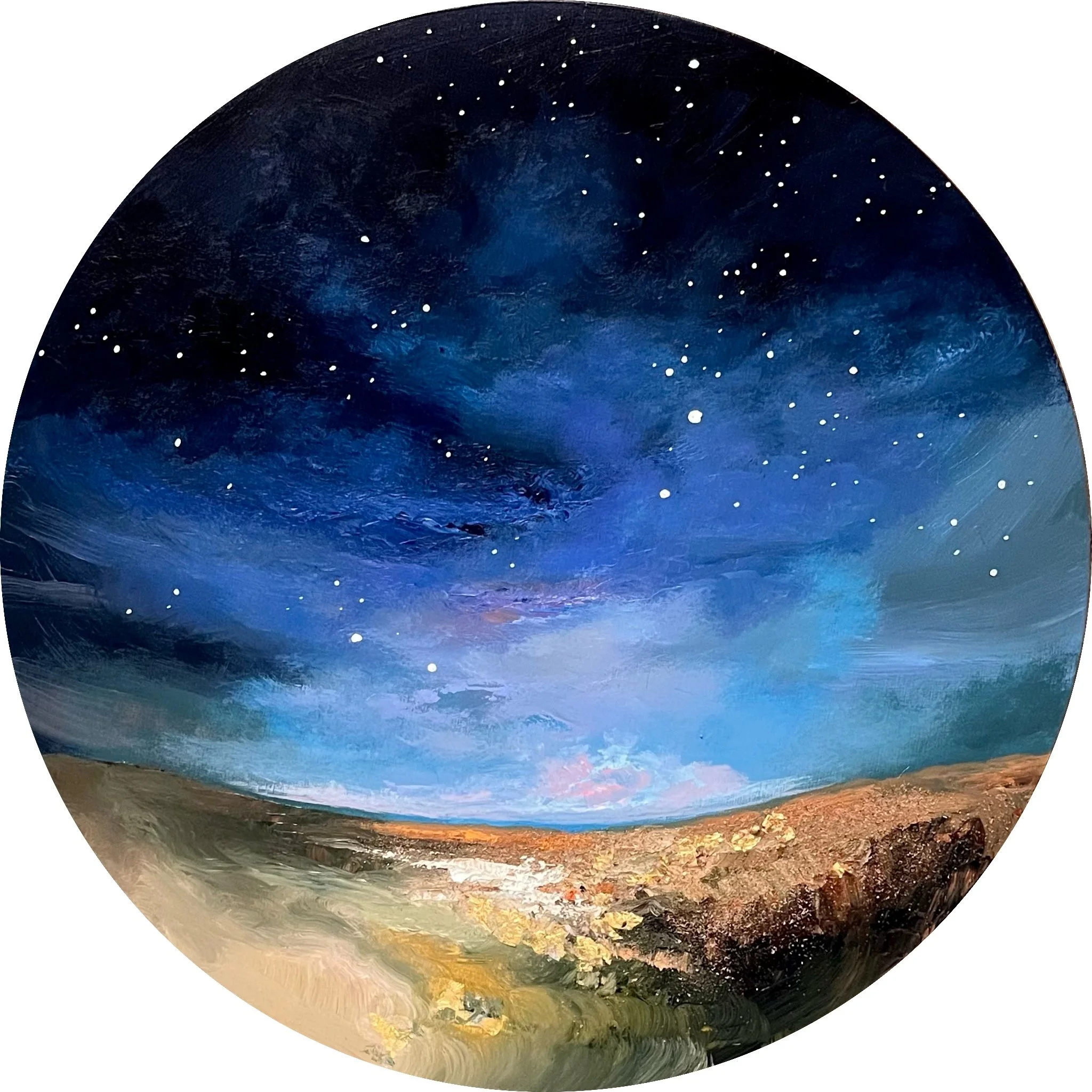 Newest Artwork › Night View Image 1 of 1 Night View CA$325.00 12” acrylic and gold leaf on round wooden cradle board Add To Cart Added! 12” acrylic and gold leaf on round wooden cradle board